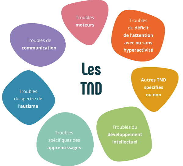 Lorsque que le fonctionnement d’un ou plusieurs de ces réseaux est altéré on parle de Trouble du Neurodéveloppement. Parmi lesquelles figurent : les Troubles du spectre de l’autisme, les troubles des apprentissages, le TDAH, les troubles du développement intellectuel.